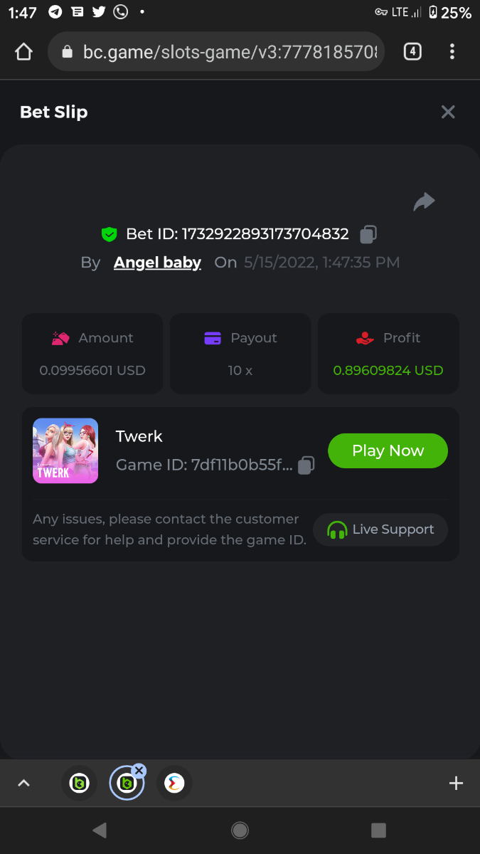 10. https://bc.game/sd/?sd=10JOT8ZLYJ3TAR Not sure why it says amount is .099 my bet is set to 10 cents.