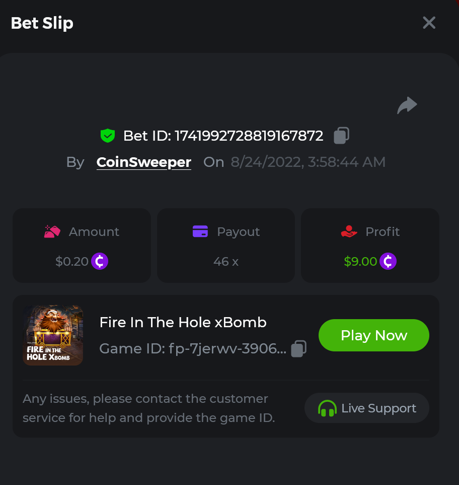 7. hot volcano - https://bc.game/sd/?sd=10SYOIO7ZEO93N - 1513.15x Bet ID: 1743939335900390528 camno de chilli - https://bc.game/sd/?sd=10SYQ0QXTML2QB - 70 x Bet ID: 1743940869443623431 candy 100x - https://bc.game/sd/?sd=10SYQGYJ50T3BN Bet ID: 1743941303908381191 Wolf Hiding - Bet ID: 1743934738919953597 - 500.20x https://bc.game/sd/?sd=10SY237RTTWDfN