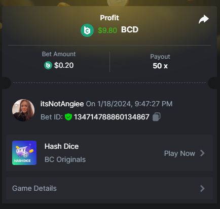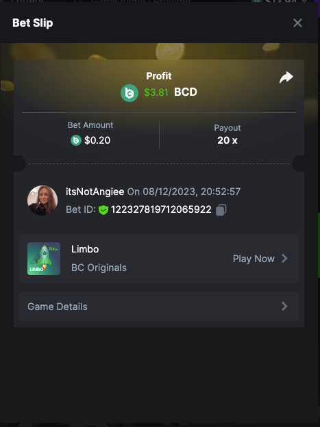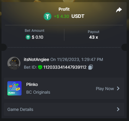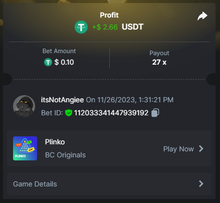 3. 12* Consecutive Bets on same color: Game Id: 35230 to Game Id: 35241 Game Id: 35230: https://bc.game/#/sd/11H3WD07T5A48J Game Id: 35231: https://bc.game/#/sd/11H3WDHGARE797 Game Id: 35232: https://bc.game/#/sd/11H3WDVEWXA7EB Game Id: 35233: https://bc.game/#/sd/11H3WE8GKWTM3B Game Id: 35234: https://bc.game/#/sd/11H3WEQHZ17GMR Game Id: 35235: https://bc.game/#/sd/11H3WEXMHDYKVV Game Id: 35236: https://bc.game/#/sd/11H3WFGIGOX6IJ Game Id: 35237: https://bc.game/#/sd/11H3WFX8SJO3YV Game Id: 35238: https://bc.game/#/sd/11H3WG70JBRL8B Game Id: 35239: https://bc.game/#/sd/11H3WIE373WWS3 Game Id: 35240: https://bc.game/#/sd/11H3WHUN84F8ZF Game Id: 35241: https://bc.game/#/sd/11H3WHBEV58D1Z Note: There are few people who are changing the seed/placing multiple bet on single seed thats why they have like alot of consecutive bets, i havent not changed the seed as it is mentioned clearly in the challenge requirements