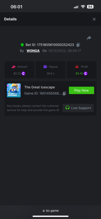 This was a clean 50x win on $0.10! But the the dollar conversion says different.