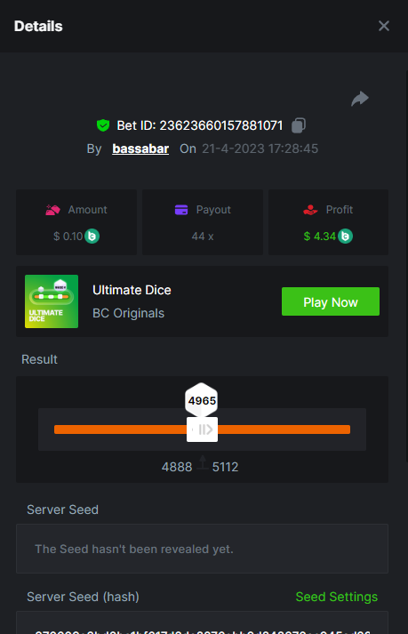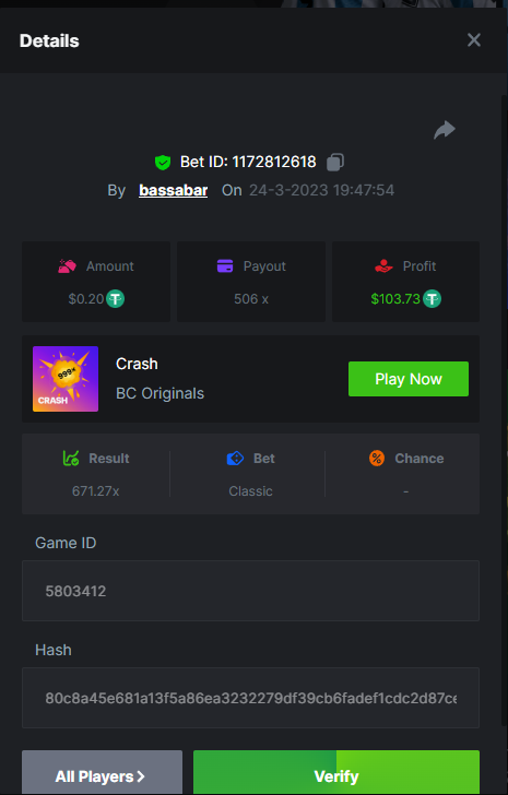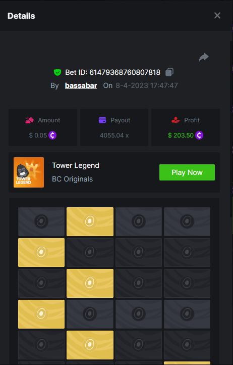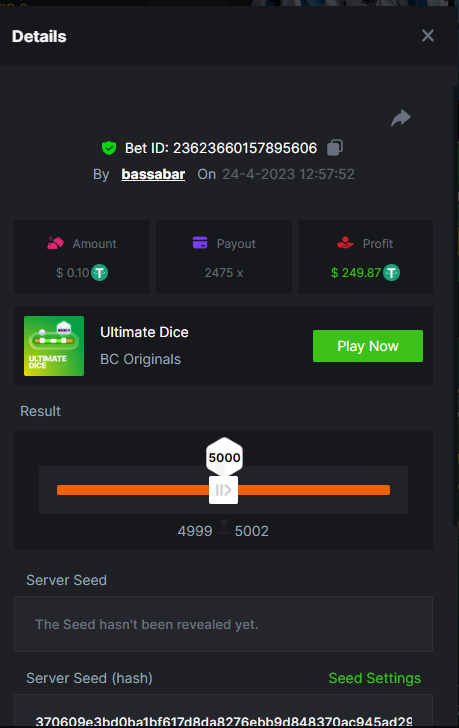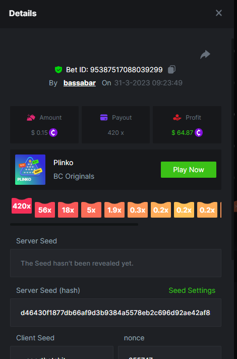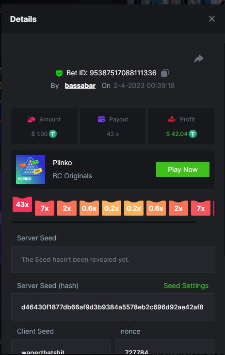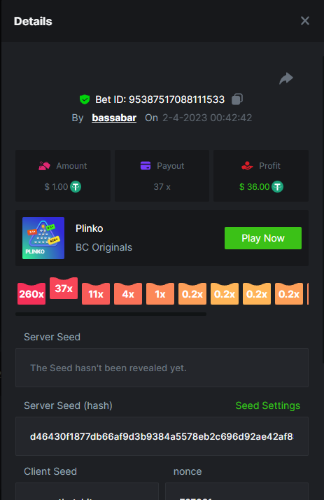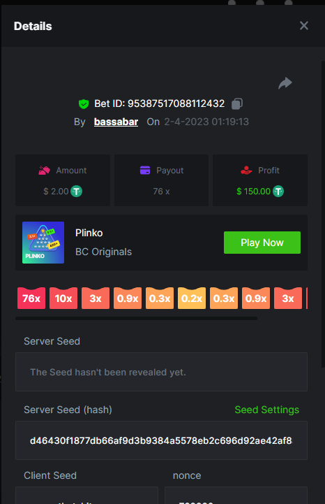 12. Highest multiplier: 506x Bounty (500x or higher): Yes Multiplier: 506x (Bounty too) https://bc.game/#/sd/1164W01WHEO8IB