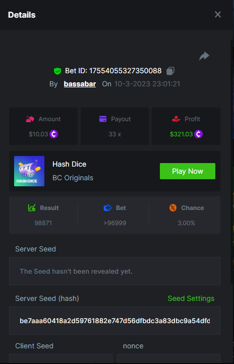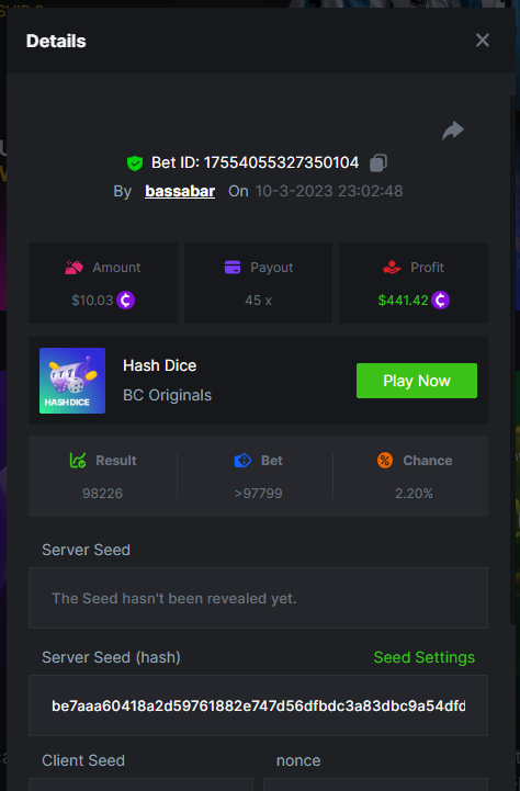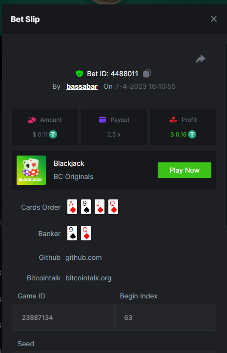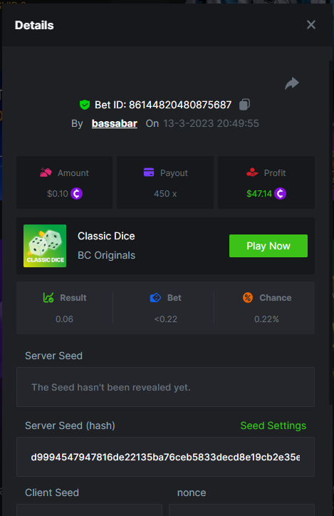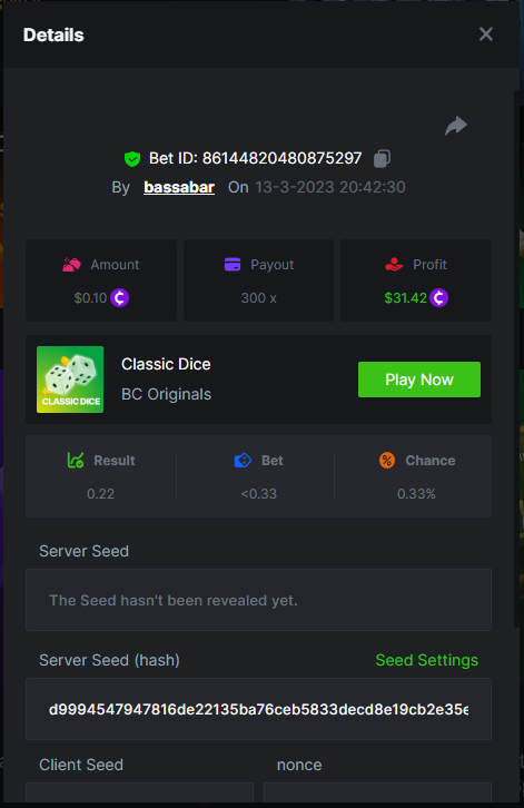 13. Highest multiplier: 486.213x Bounty (AAA or KKK): Yes Multiplier: 486.213x https://bc.game/#/sd/115W66QQU4A80J Bounty(KKK): https://bc.game/#/sd/115VAVB5LCGD1V