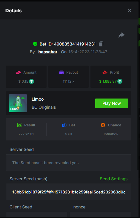18. Multiplier: 6001x (bounty too) https://bc.game/#/sd/1151IQC5NWC7PV