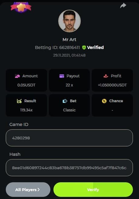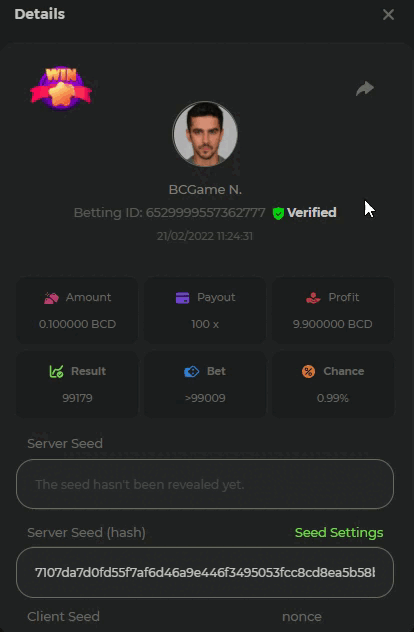 $1k Prestige Crash Challenge #7 Hello everyone. We are pleased to announce this week's challenge available for any VIP levels at BC.Game. Let’s see who can get the highest multiplier on our Crash, the total prize pool is $1,000. What's the Challenge? Win the highest multiplier you can on in-house Crash. In case of a tie, the winner will be a player with a higher bet amount. Minimum VIP There's no minimum VIP level Minimum Payout Minimum payout to qualify is 20x Minimum Bet Size $0.05 USD equivalent Eligible Coins All coins are eligible (excepting JB) Available Prizes 1st Place....... $400 2nd Place..... $200 3rd Place...... $100 4th Place......$50 5th-10th.........$40 How to Enter To enter, copy the bet ID of the bet you'd like to submit. Once you've copied it, post it as a reply to this thread like so: Betting ID: 662816411 In the same post, upload a screenshot of your win by clicking the game ID WITH VIEW IN USD mode ENABLED (accessible at the bottom of dropdown menu for your wallet up top. This way, we can ensure that your bet indeed met the minimum requirement at the time of placing it: Please combine all of your hits together in a SINGLE post. Edit your existing post for additional hits, don't create a new post. Bets must be posted within 24 hours of placing bet in order to keep things fair for everyone. Bets must be made during the specified time window stated above. This thread will lock automatically when the time period is over. One (1) entry per household. Anyone found attempting to win multiple prizes will be disqualified from this challenge as well as all future challenges. Failure to follow instructions will result in your submission being null and void. By entering this challenge, you acknowledge that BC.Game has the final decision on results and placement. Payouts will be made within 72 hours of challenge completion, please be patient, we promise you that we haven't forgotten. We check and double check to make sure the rightful winners receive their prize. Prizes will be paid out in BCD. Good luck to all participants