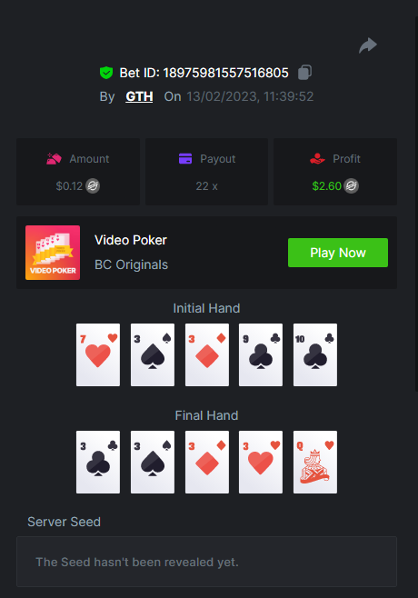 $1,500 Exclusive Mid-week Video Poker Prestige Challenge #69
