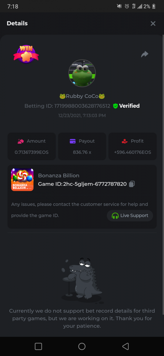 17. Betting ID: 1719988003628176512 836.76 X = $2092.51 (596 EOS)