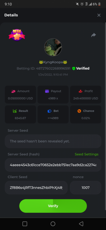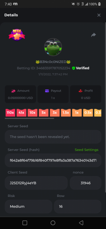 11. @ILikeToParty yeah you dick and if ya didnt read any of my post comments were I said im new at this Now Did anywhere I say I did it all I don't even code I just know basics and taught myself. Honestly I don't even care If I win I had fun learning alot more about - 1. about provably fair 2. html, css, js coding, and how to understand it. so how does it feel to cry like a tattle tale at the age of 23+