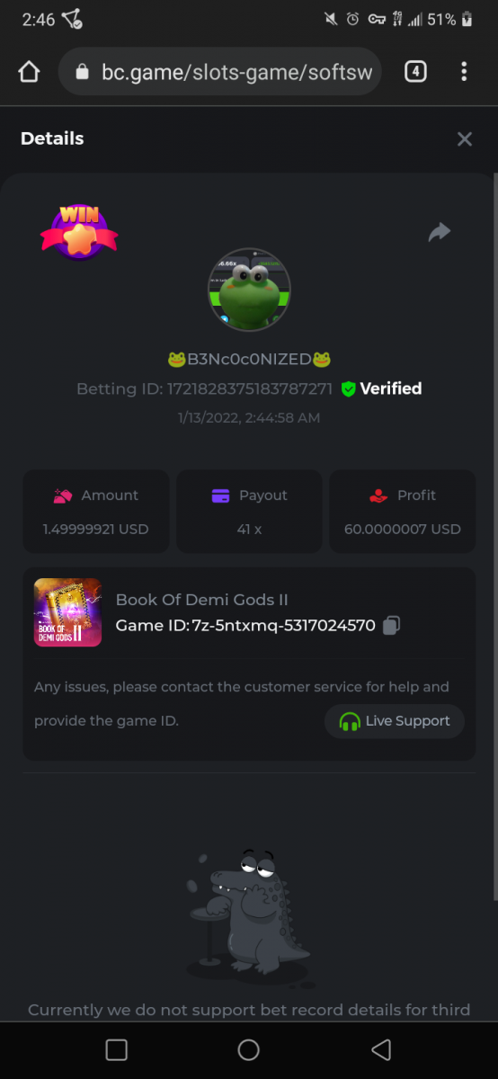 1. https://bc.game/sd/?sd=10FNRKVI39BHG3 Bet ID: #54462126638498163