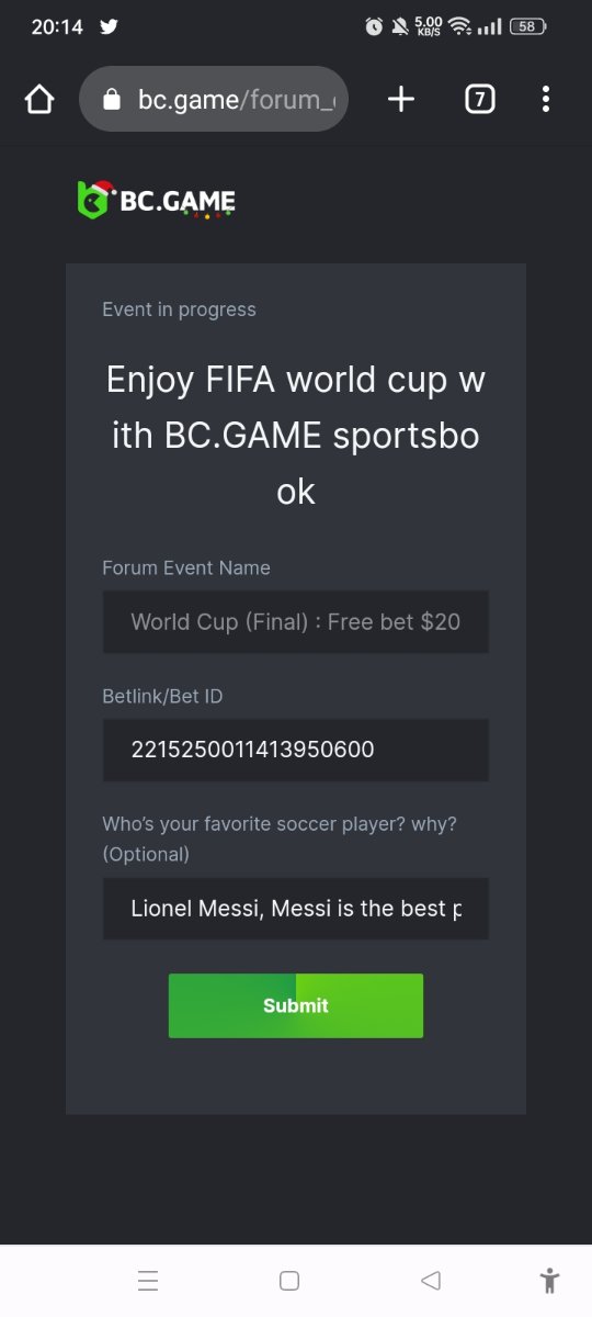 2. Website URL ( https://bc.game and https://hash.game ) Device & System ( Oppo A5 2020 )(Android 11) Feedback / Live bug / User experience. ( I cant take the coco, no captcha) Journey ( In Kiwi Browser i cant have the coco, no captcha)