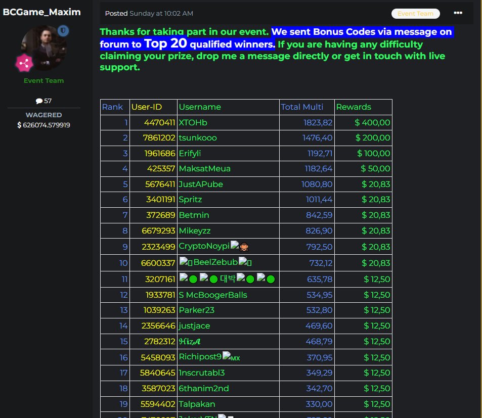 1. Hey have not recived code for the 3000PGsoft midweek challenge yet ? and saw now that only  top 20 is announced and not all participants, why is that ?