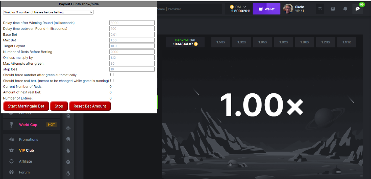 Skele Posted December 7, 2022 Share Posted December 7, 2022 well you can't redefine a const, so either change your const to a var or figure out why you are trying to reassign to a constant value, which would make it not constant. Â As for limbo scripts i have written a bunch for a number of games, for just messing around i would suggest the browser plugin code injector it will do the injection for you based on the URL of the page and it allows you to seperate out javascript from css from html. I went the whole wrote a browser plugin route though. Â its nice because you can do things like generate the bet link to the highest payouts as you encounter them. or write an autovaulting script to vault your coin above a certain amount. Â Link to comment Share on other sites More sharing options...