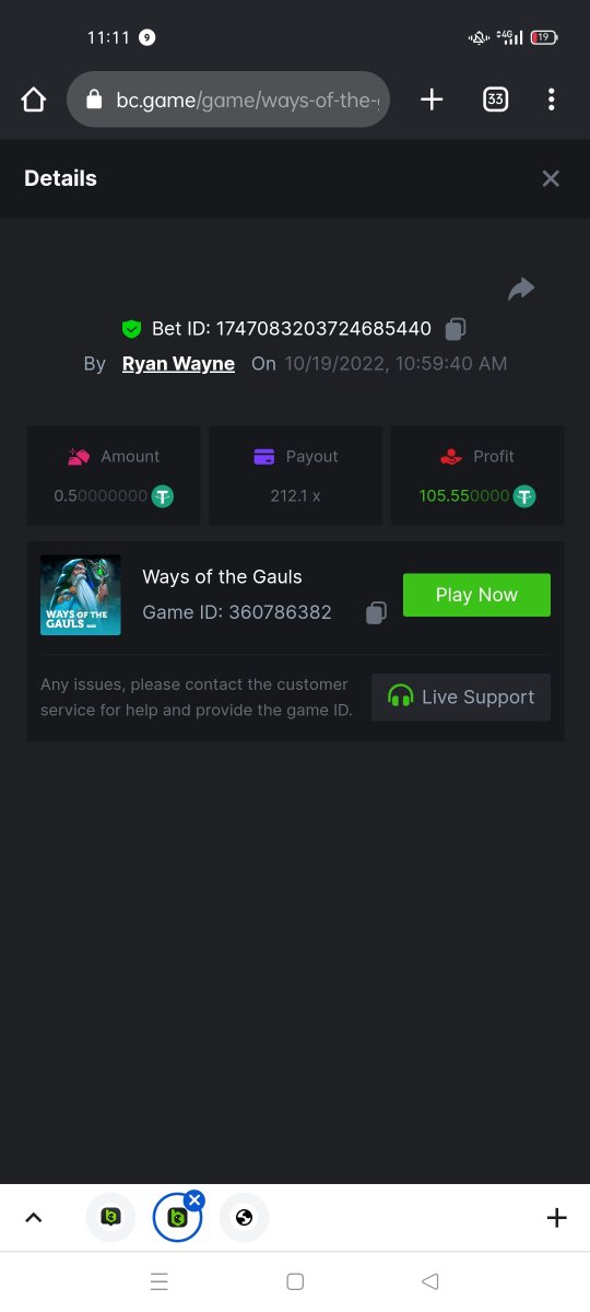 19.1 x https://bc.game/#/sd/10VCKE6U31D6HF