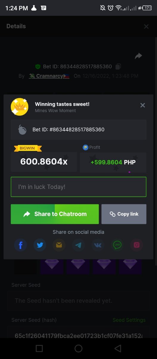 can u give sample mines @Black Tiger about how many bomb and Diamond on every single 1bomb until 24 bomb ? thx