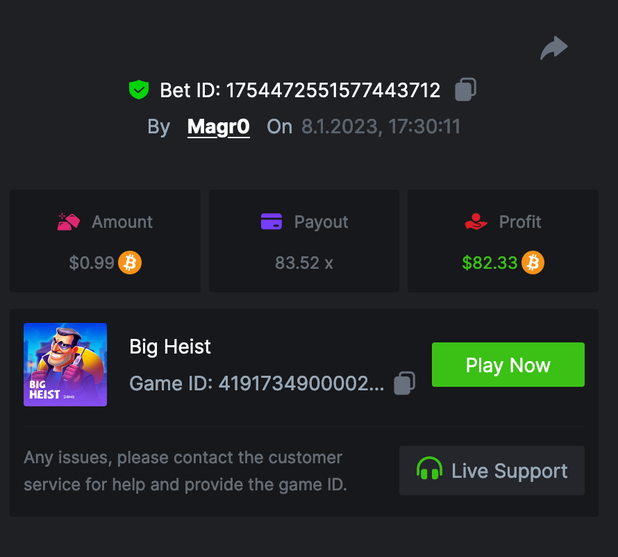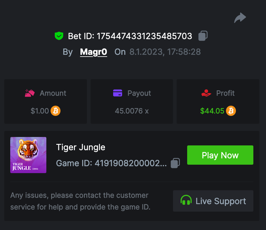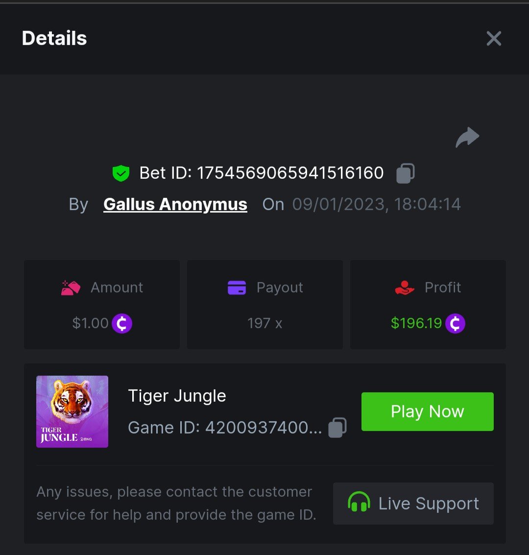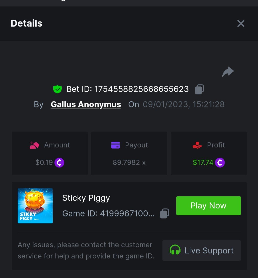 new Posted January 9, 2023 Share Posted January 9, 2023 Green Chilli 24.5x https://bc.game/#/sd/110OJ89UHJSSGJ Happy Fish 42x https://bc.game/#/sd/110OJV0F3EHQFN Aztec Fire 43.5x https://bc.game/#/sd/110OK0PHTHOM4Z Aztec Goddess of Egypt 64.5x https://bc.game/#/sd/110OKI7KE9RSPF Hit More Gold 11.2x https://bc.game/#/sd/110OKO11P2XK43 Sticky Piggy 10x https://bc.game/#/sd/110OKRWVW9JYMR Rio Gems 55x https://bc.game/#/sd/110OL5FR2QYI37 Big Heist 216.5x https://bc.game/#/sd/110OL9RZSV90K3 Black Wolf 130x uh oh lost it Link to comment Share on other sites More sharing options...