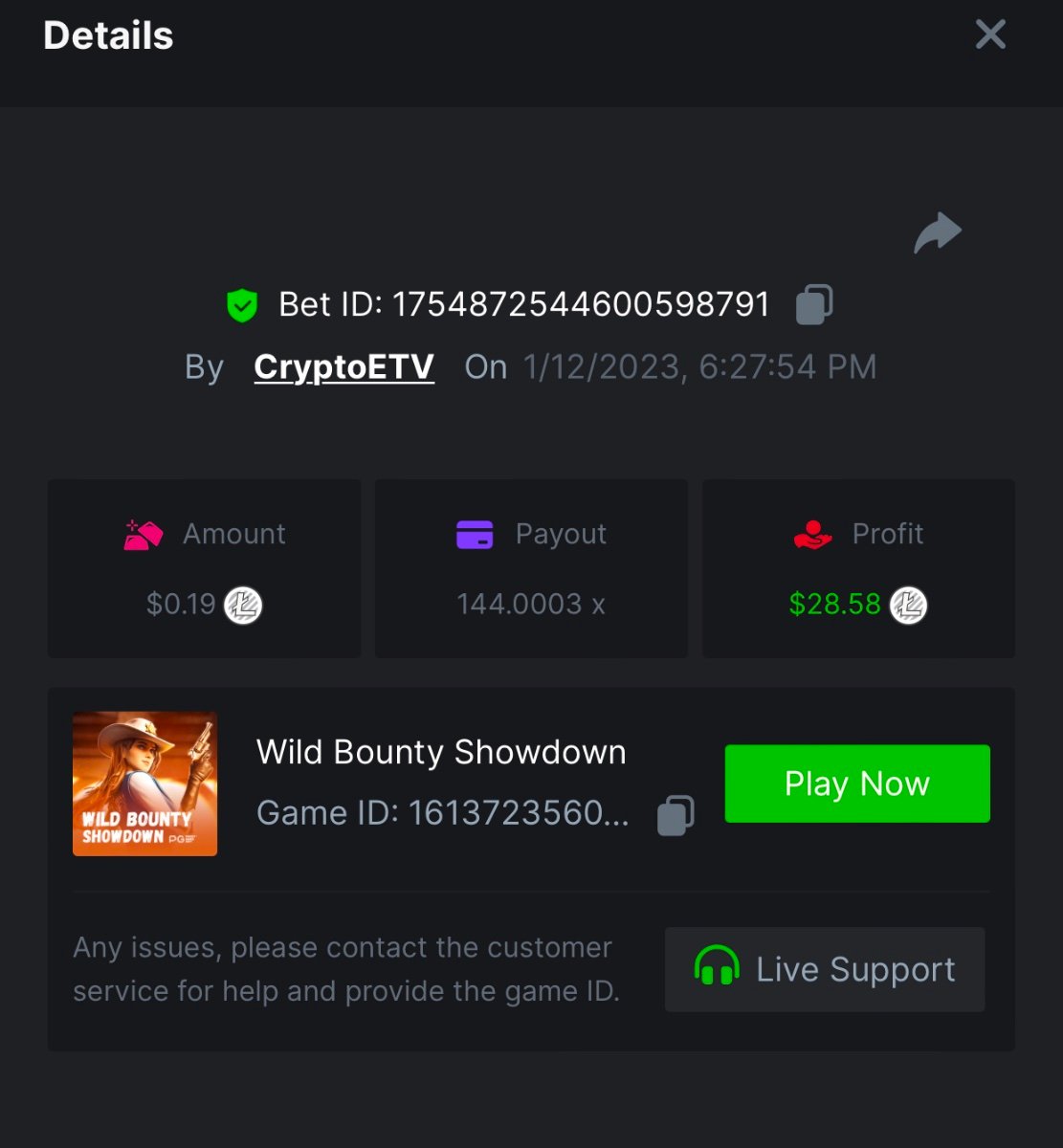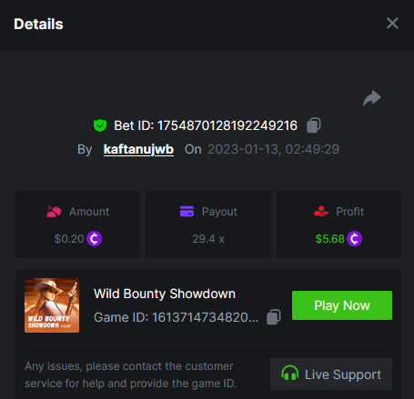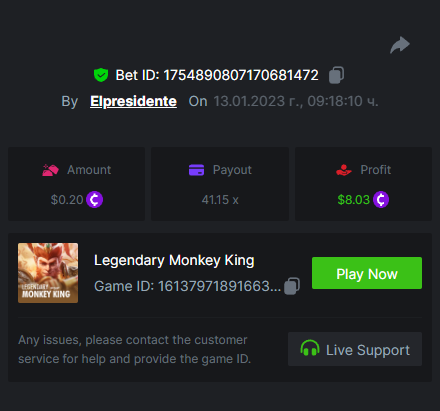 bassabar Posted January 12, 2023 Share Posted January 12, 2023 (edited) Total multiplier: 2041.4055x Bounty (50x): No Wild Bounty Showdown Multiplier: 192x https://bc.game/#/sd/111L2S7QLY7Z0Z Candy Bonanza Multiplier: 172.8x https://bc.game/#/sd/111LH482LDS8IB Leprechaun Riches Multiplier: 122.1x https://bc.game/#/sd/111M5CV5FB7BWZ Spirited Wonders Multiplier: 367.7055x https://bc.game/#/sd/111M38HURBKMJ7 Butterfly Blossom Multiplier: 140.5x https://bc.game/#/sd/111LXPWJ33GQOJ Supermarket Spree Multiplier: 156x https://bc.game/#/sd/1116EWRJVIJV2R Wild Bandito Multiplier: 200.4x https://bc.game/#/sd/111E8IB8DNVF9V Destiny of Sun and Moon Multiplier: 156x https://bc.game/#/sd/111DBDU26E1HXV Prosperity Fortune Tree Multiplier: 187x https://bc.game/#/sd/111M49IUVA2XAR Legendary Monkey King Multiplier: 346.9x https://bc.game/#/sd/111LMRJL9LSMJ7 Edited January 18, 2023 by bassabar 1 Link to comment Share on other sites More sharing options...