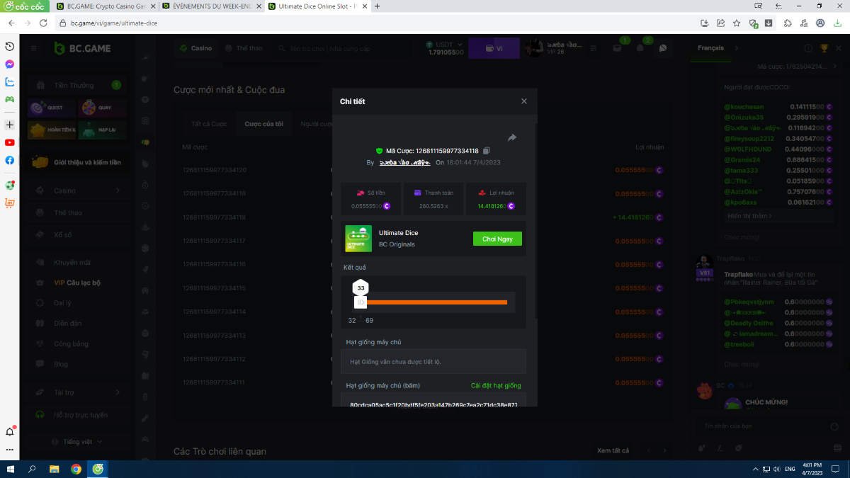 Complétez autant des 17 paiements suivants sur BC original👍 ULTIMATE DICE (https://bc.game/fr/game/ultimate-dice)👍. Doit être un multiplicateur exact ou très proche.