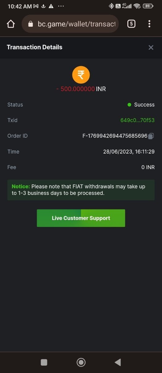 Inr fiat withdrawal pending for over 48 hours pls help ASAP a lower fiat amount was processed very fast.