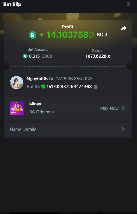 🥇1st place . . . .  7$ BCD  - Ngay0405 - 1077x  14.1