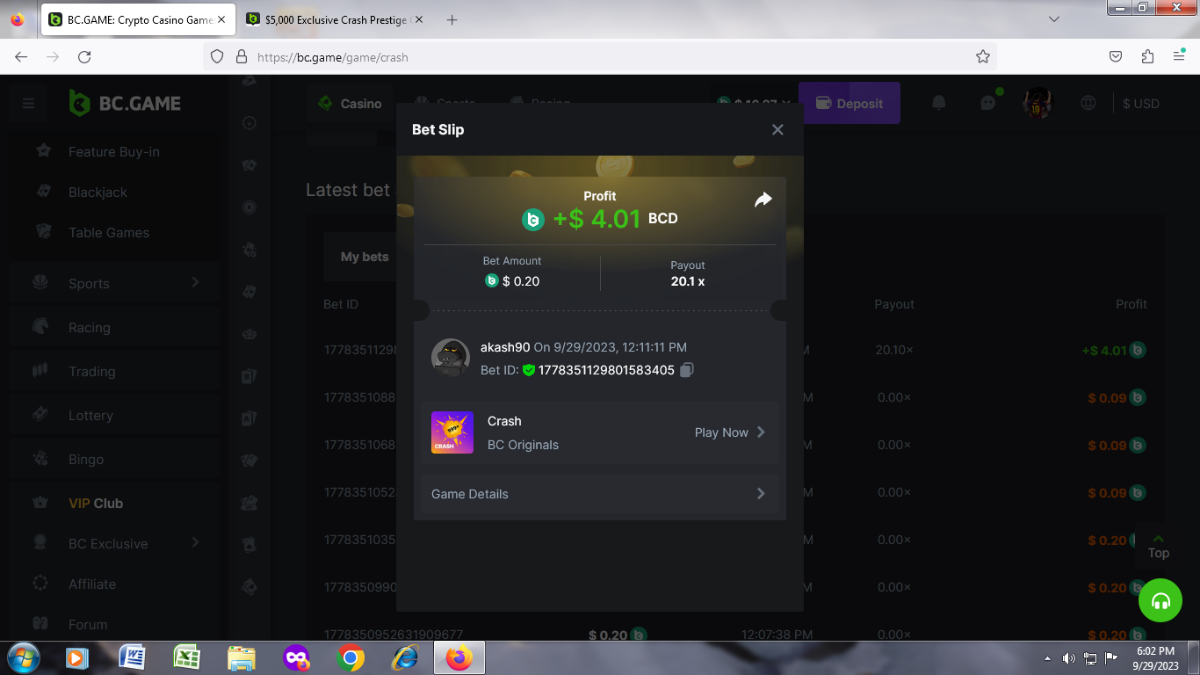 $5,000 Exclusive Crash Prestige Challenge #107