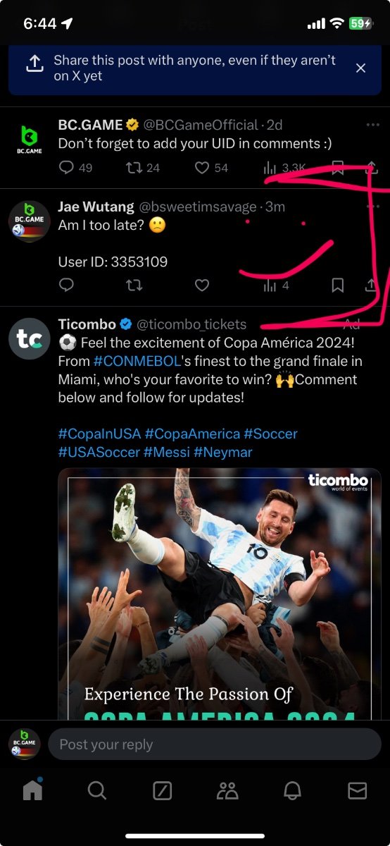 Bildinho Posted June 3, 2024 Share Posted June 3, 2024 USER ID :ย 12656178 X USER : @Bildera3 GOOD LUCK GUYS!ย Link to comment Share on other sites More sharing options...