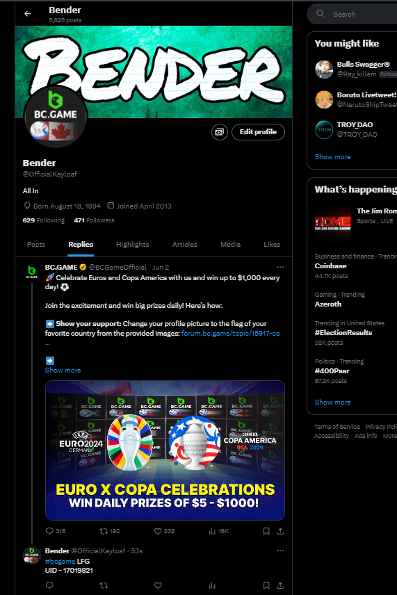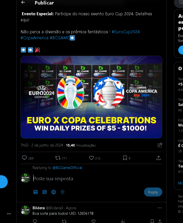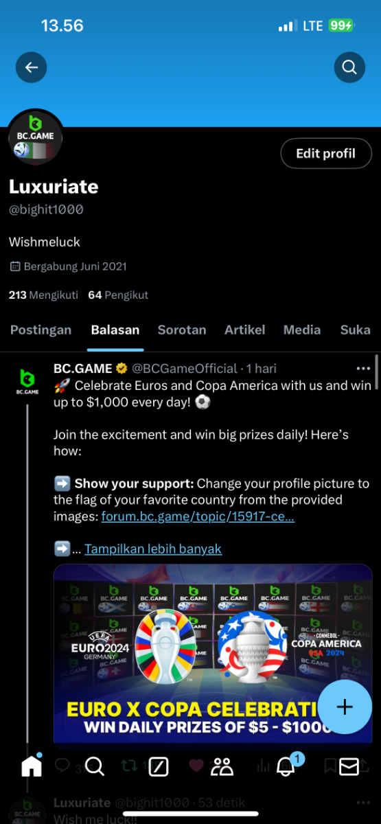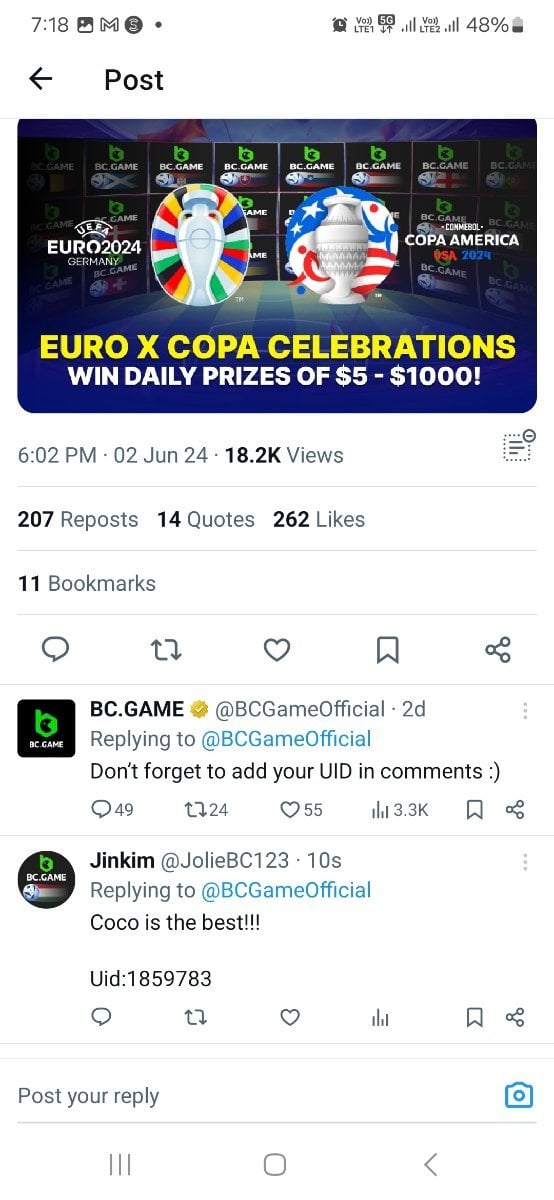 Event Team BCGame_Maxim Posted June 1, 2024 Event Team Share Posted June 1, 2024 ย Celebrate Euros and Copa America with Us! ๏ธ Duration: 1st JUNE to 30thย JUNE Join the excitement of Euros and Copa America with us and stand a chance to win big prizes daily! How to Participate: 1. Show Your Support Change your profile picture to the flag of the country you support on your twitter handle from our following images. Comment your User ID on our X postย here:ย https://x.com/BCGameOfficial/status/1797207266468495856 2. Engage and Win Engage with our posts on X (formerly Twitter) to enter daily prize draws. Each Prizeย range from $5 to $1000 every day for random participants! 3. Special Event - The Euro Cup 2024 Participate in our exclusive Euro Cup 2024 event. Find all the details hereย https://bc.game/events/homeย Don't miss out on the fun and the chance to win fantastic prizes. Show your team spirit, engage with our community, and win daily! IMAGES TO CHANGE ON YOUR X PROFILE (Click on any images below to expand or right click to save) Euros 2024 Group AGermany Scotland Hungary Switzerland Euros 2024 Group BSpain Croatia Italy Albania Euros 2024 Group CSlovenia Denmark Serbia England Euros 2024 Group DPoland Netherlands Austria France Euros 2024 Group EBelgium Slovakia Romania Ukraine Euros 2024 Group FTurkey Georgia Portugal Czechia ย Copa America 2024 Group AArgentina Peru Chile Canada ย ย ย Copa America 2024 Group BMexico Ecuador Venezuela Jamaica ย ย Copa America 2024 Group CUSA Uruguay Panama Bolivia ย ย Copa America 2024 Group DBrazil Colombia Paraguay Costa Rica ย ย Let's celebrate together and make this a memorable tournament season! Link to comment Share on other sites More sharing options...