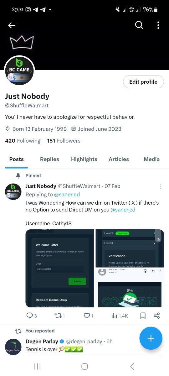 Mf-BC Posted June 4, 2024 Share Posted June 4, 2024 Twitter: https://x.com/eunjj0 bc profile :ย https://bc.game/#/user/profile/10171779 Uid: 10171779 Link to comment Share on other sites More sharing options...