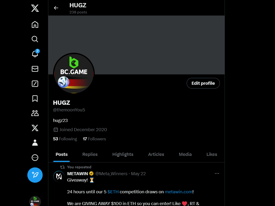 ForsakenSanford Posted June 4, 2024 Share Posted June 4, 2024 On 6/1/2024 at 12:56 PM, BCGame_Maxim said: ย Celebrate Euros and Copa America with Us! ๏ธ Duration: 1st JUNE to 30thย JUNE Join the excitement of Euros and Copa America with us and stand a chance to win big prizes daily! How to Participate: 1. Show Your Support Change your profile picture to the flag of the country you support on your twitter handle from our following images. Comment your User ID on our X postย here:ย https://x.com/BCGameOfficial/status/1797207266468495856 2. Engage and Win Engage with our posts on X (formerly Twitter) to enter daily prize draws. Each Prizeย range from $5 to $1000 every day for random participants! 3. Special Event - The Euro Cup 2024 Participate in our exclusive Euro Cup 2024 event. Find all the details hereย https://bc.game/events/homeย Don't miss out on the fun and the chance to win fantastic prizes. Show your team spirit, engage with our community, and win daily! IMAGES TO CHANGE ON YOUR X PROFILE (Click on any images below to expand or right click to save) Euros 2024 Group AGermany Scotland Hungary Switzerland Euros 2024 Group BSpain Croatia Italy Albania Euros 2024 Group CSlovenia Denmark Serbia England Euros 2024 Group DPoland Netherlands Austria France Euros 2024 Group EBelgium Slovakia Romania Ukraine Euros 2024 Group FTurkey Georgia Portugal Czechia ย Copa America 2024 Group AArgentina Peru Chile Canada ย ย ย Copa America 2024 Group BMexico Ecuador Venezuela Jamaica ย ย Copa America 2024 Group CUSA Uruguay Panama Bolivia ย ย Copa America 2024 Group DBrazil Colombia Paraguay Costa Rica ย ย Let's celebrate together and make this a memorable tournament season! Link to comment Share on other sites More sharing options...