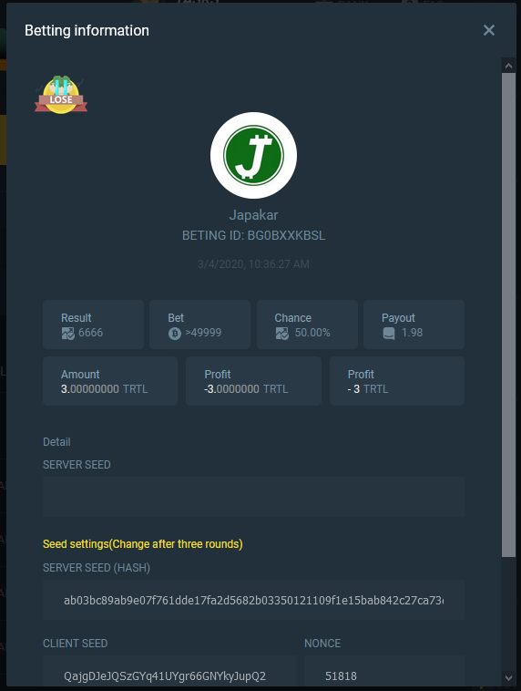 PitrO Posted March 5, 2020 Share Posted March 5, 2020 Hit 66666 but lose Link to comment Share on other sites More sharing options...