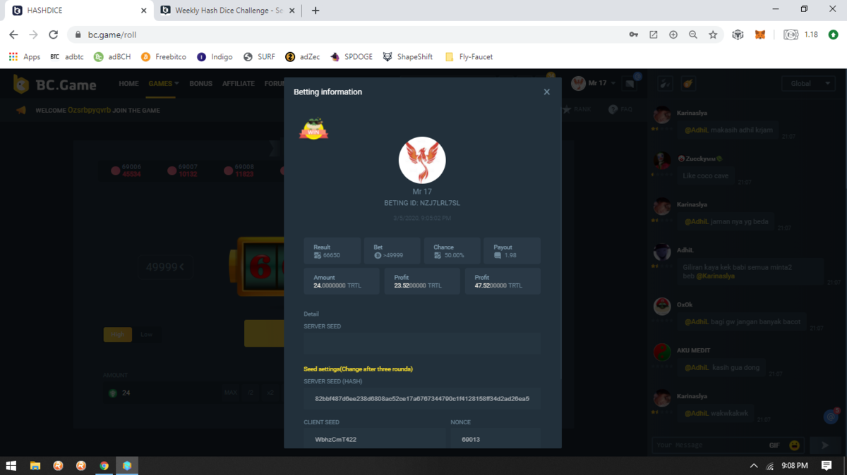 FkArndFndOut Posted March 5, 2020 Share Posted March 5, 2020 also i rolled 66678 on game # 59559 betting 46.752 doge Link to comment Share on other sites More sharing options...