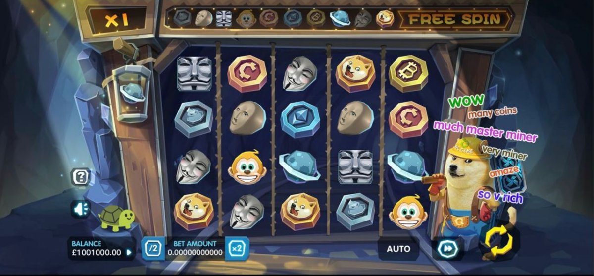 And that his form when you are winning or you hit a great multiplier.And also i suggest when you hit win if in the Egyptian is a coin i hope here is a DOGE COIN or STONE cause hes a miner.