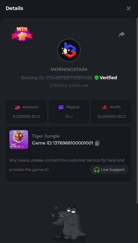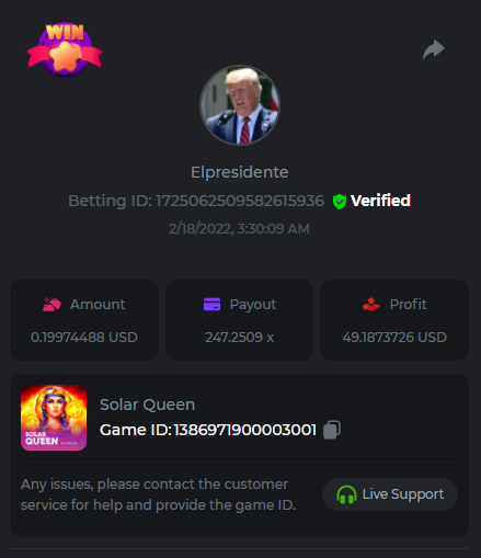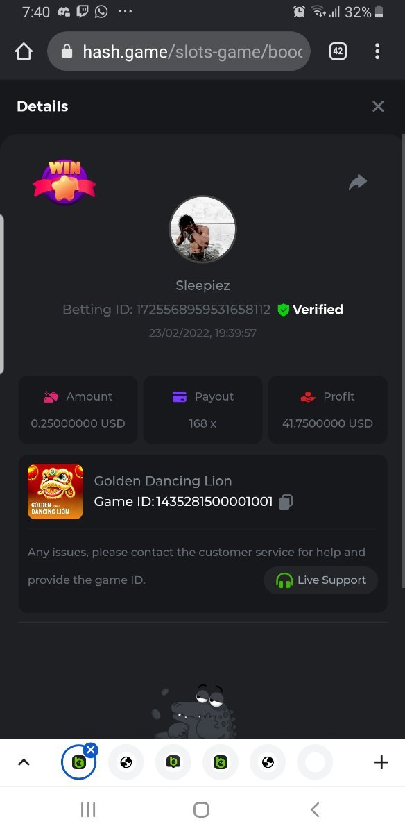 • In the same post, upload a screenshot of your win by clicking the game ID WITH VIEW IN USD mode ENABLED (accessible at the bottom of dropdown menu for your wallet up top. This way, we can ensure that your bet indeed met the minimum requirement at the time of placing it: