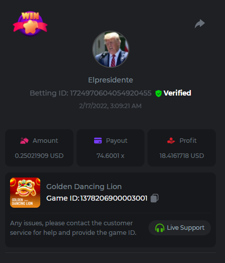 Betting ID: 1725487027814036096     325.45x