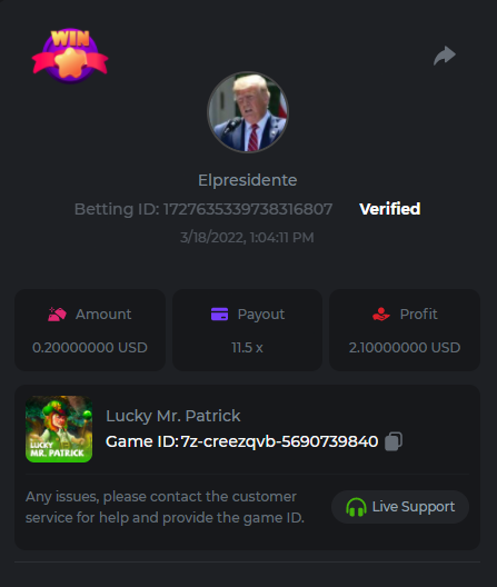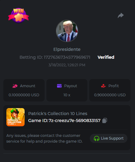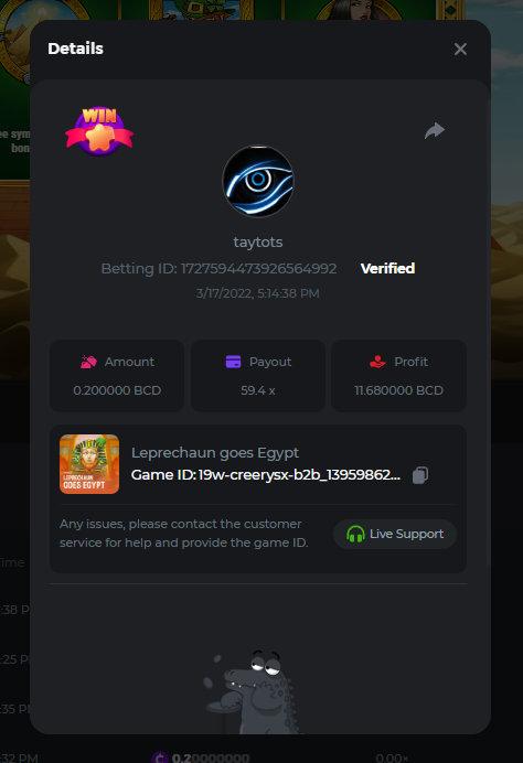 BCGame_POP Posted March 22, 2022 Author Share Posted March 22, 2022 The below are the winners of this event, prizes will be distributed shortly. No. Username Total Multi Prize in $ 1 Swapnaseth 1212.61 200 2 BLessingGirL05 1090.25 100 3 Elpresidente 1037.5 60 4 DaMiEnNn 766.58 20 5 Cryptoliser 594.96 20 6 jhonncueva 584.86 20 7 230curty 552.7 20 8 Elsabe 543.51 20 9 OhNoooo 520.4 20 10 Hoya_ 343 20 Link to comment Share on other sites More sharing options...