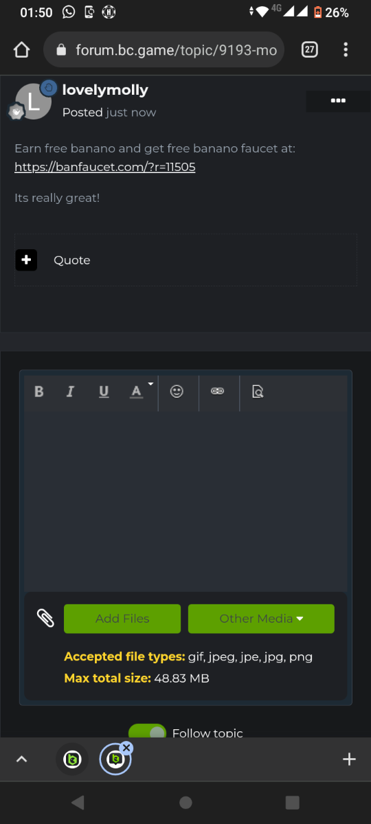 Screenshot_20220429-015034.thumb.png.8265cc8dd9f527bfb69c91841a1a58f3.pngEarn free banano and get free banano faucet at: https://banfaucet.com/?r=11505