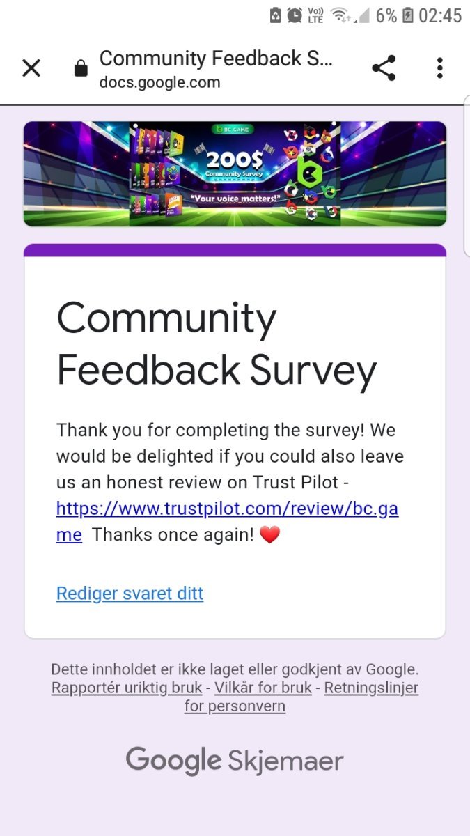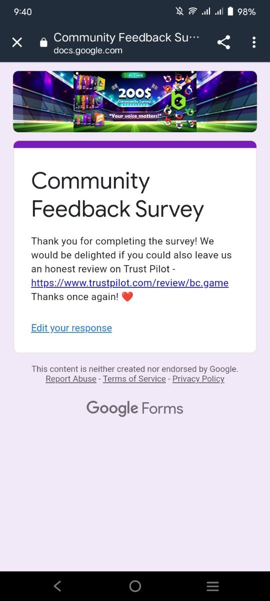 Janina47 Posted May 6, 2022 Share Posted May 6, 2022 17 hours ago, BCGame_POP said: At BC.GAME, we have constantly been evolving from the feedback we get from users on the various features we offer. Be it the Lucky Wheel or BCD Dashboard. We always kept on revolutionizing new features in the Crypto Gambling industry. We want your feedback on various features of our Casino like Wallet Enhancements, BCD Rewards, Gameplay Integrations, etc. Please take a moment to fill out the survey form here - https://bit.ly/bcgamecommunitysurvey Giveaway Details: 30 users who filled the survey will be randomly picked and be rewarded 5$ each after the event's commencement. 5 users who give good suggestions will be handpicked and rewarded 10$ each. Anyone with a BC.GAME account can participate in this survey. If you have anything else to say, you can always leave a comment on this thread. Community Survey and $200 Worth Shitlinks Giveaway Link to comment Share on other sites More sharing options...