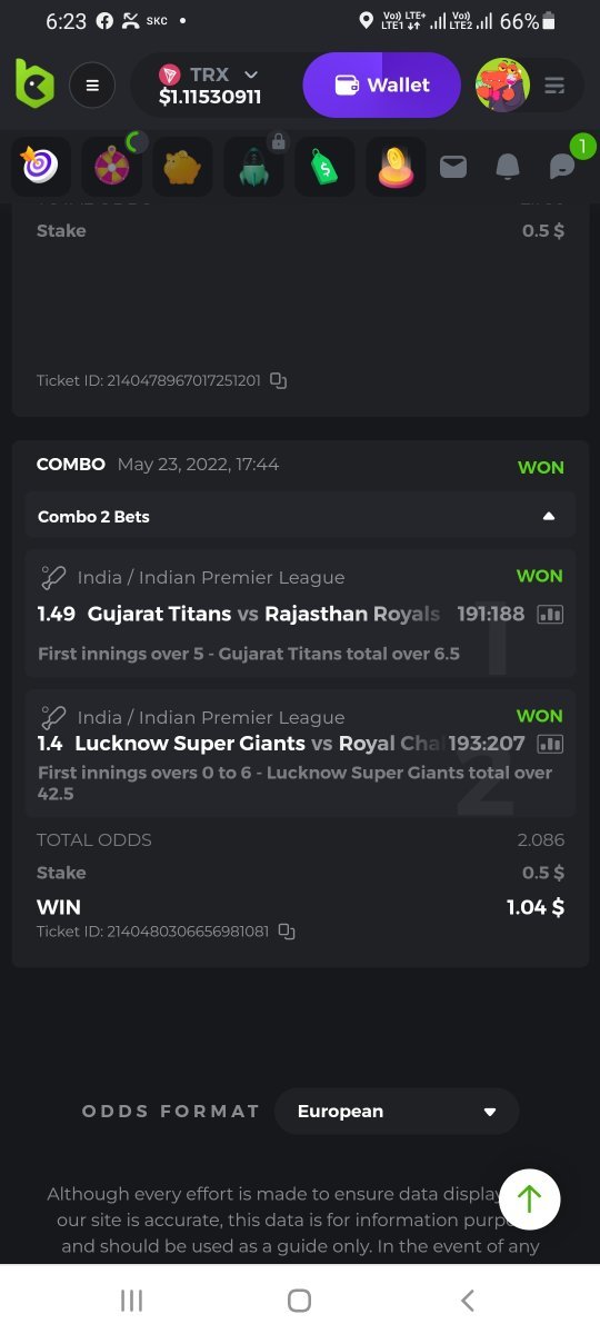 进行体育投注,复制票号 + 投注链接并将其发布在主题中。